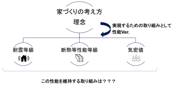 市場を見渡した時、性能3点(耐震、断熱、気密)の初期数値の高さを競っているが(もちろん大切なこと)お家は、住まい続けなければならない、住み続ける時に、その初期性能はどれくらい維持できるのか?
