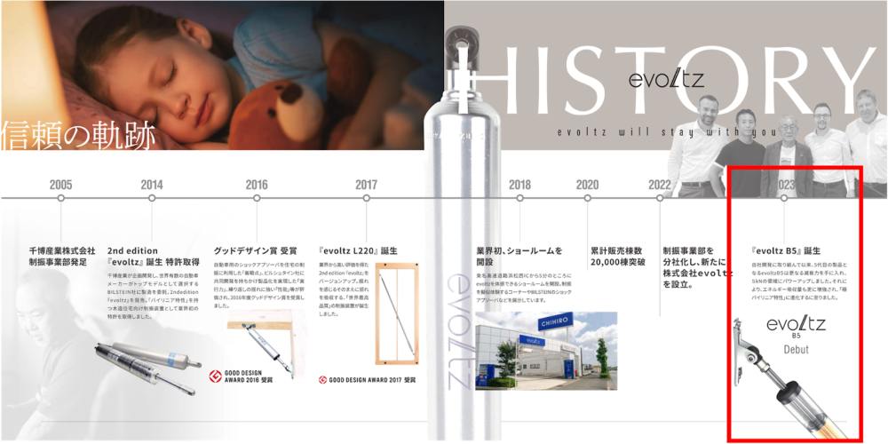 ・微振動の揺れから吸収する特性(バイリニア特性)のevoltzシリーズ