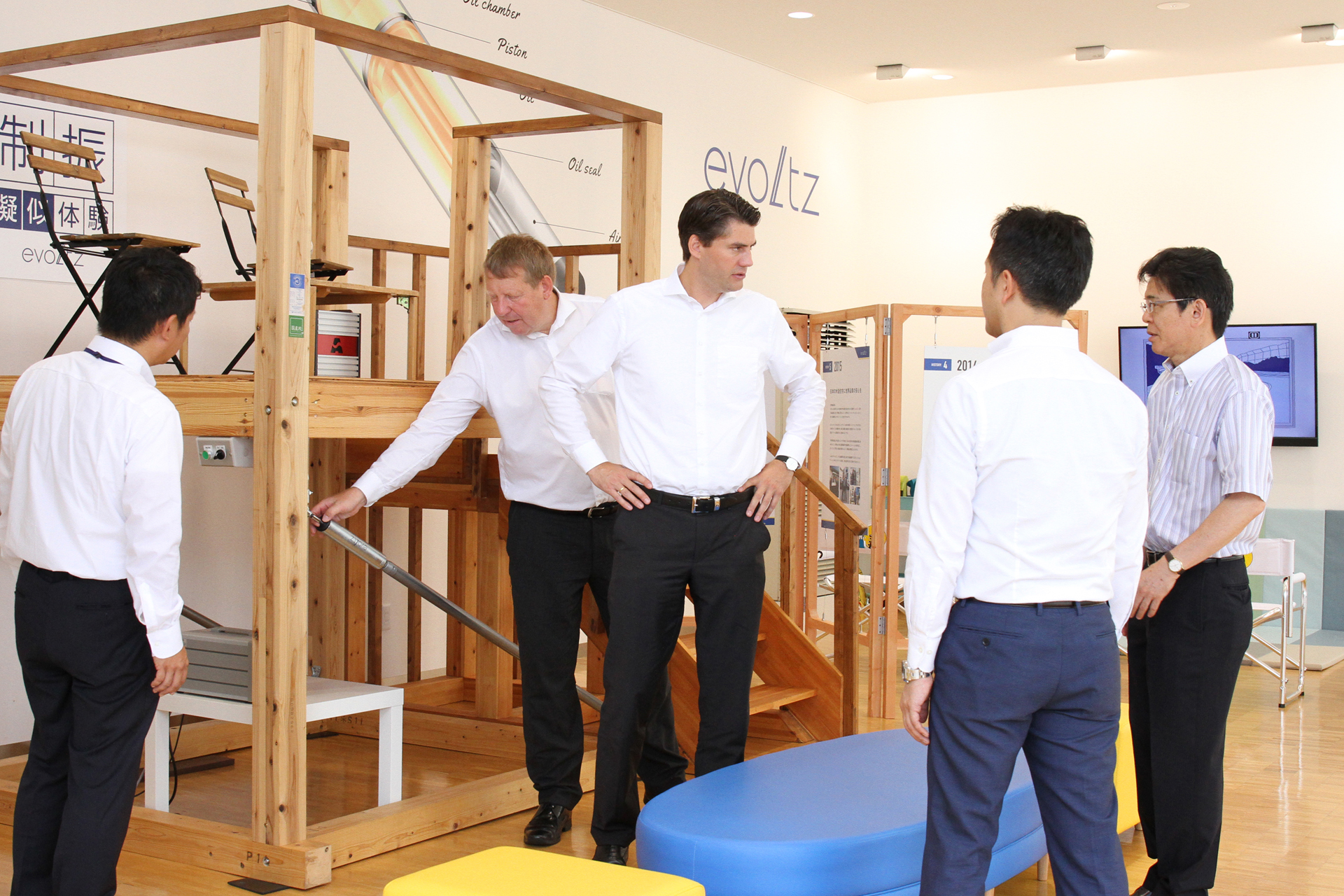 また、制振体験コーナーの動線設計、ディスプレイ制作など空間作りのお手伝いも行っています。