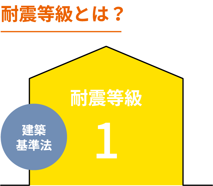 数百年に1 度起こる大地震(震度6強~7 程度)に対しても倒壊や崩壊しない強さ。建築基準法で求めらる最低水準です。