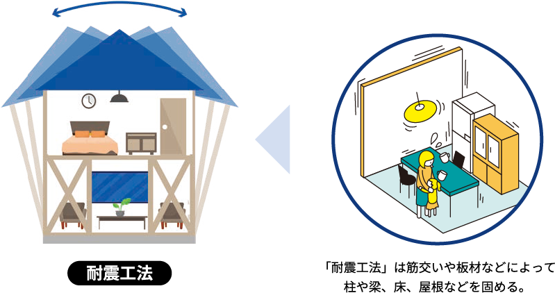 また、震度6以上の大地震に対しては、居住者の生命を守る(倒壊しない)ことを目的としている。