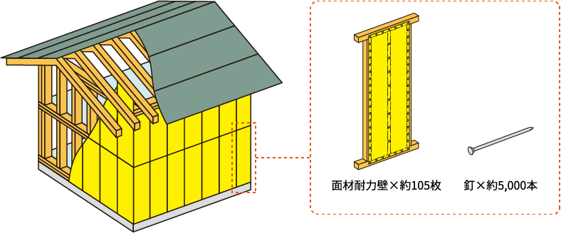 【家を支える部材】 1棟の住宅に使用されている耐力壁と釘。