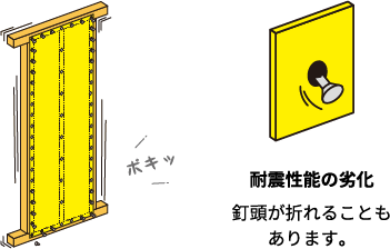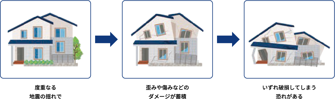 建物にダメージを与えるのは大型の地震に限りません。余震や、頻繁に起こる小規模な地震の揺れによっても、住宅の構造には少しずつ歪みや傷みなどのダメージが蓄積していくのです。