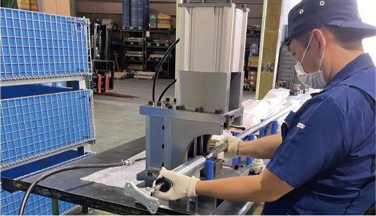 社内に設置した疲労試験機を用いて、定期的に抜き取り検査を実施しています。
